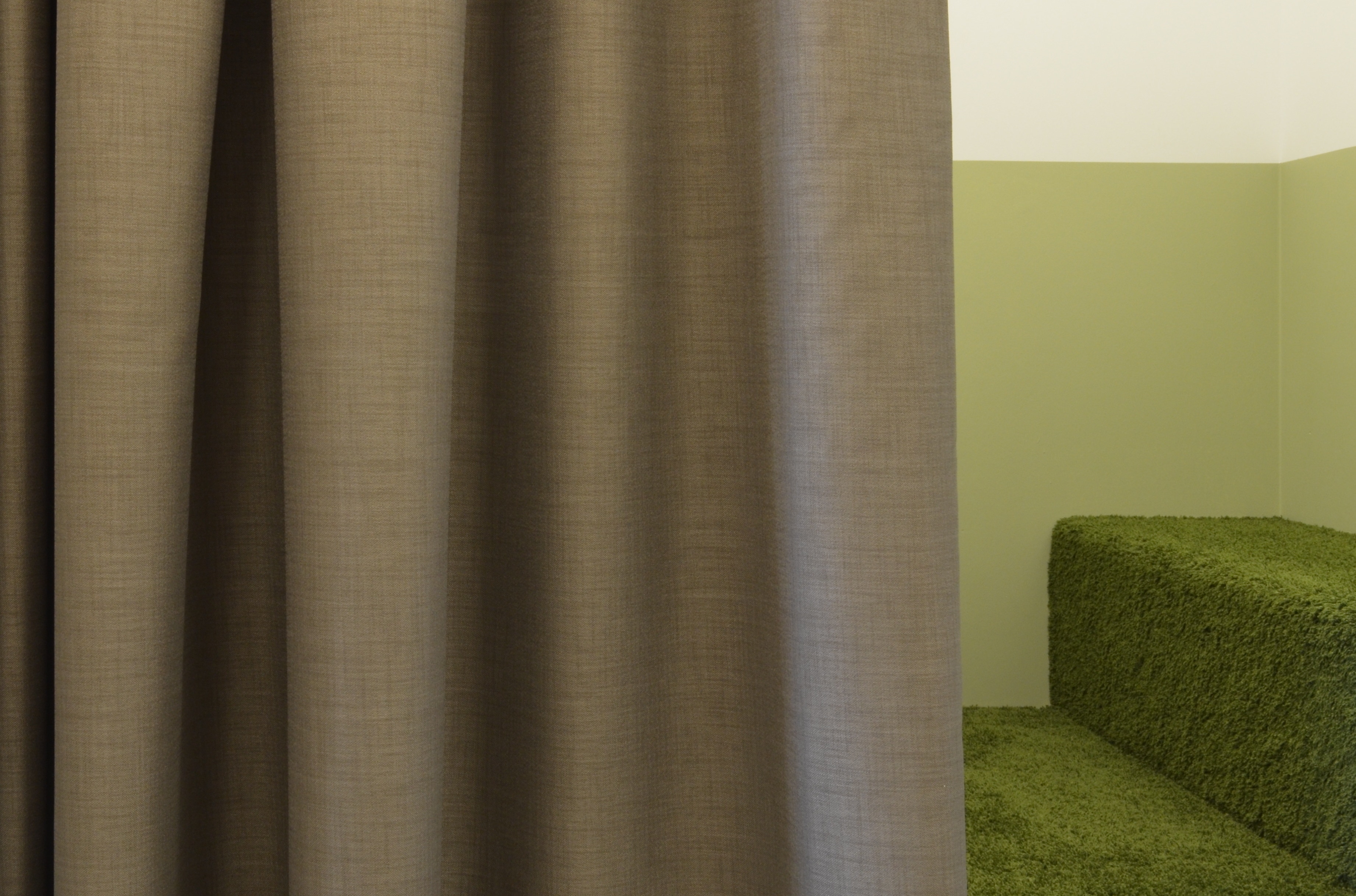 Alle weiteren Funktionsräume, wie Bewegungsraum, Werkstatt, Atelier, Schlafen, etc., werden über einen breiten Flurraum erschlossen, der raumhoch möbliert, als Spiel- und Stauraum fungiert. Nischen und Bänke bieten Sitzmöglichkeiten an, eine Kuschelhöhle dient als Rückzugsort.