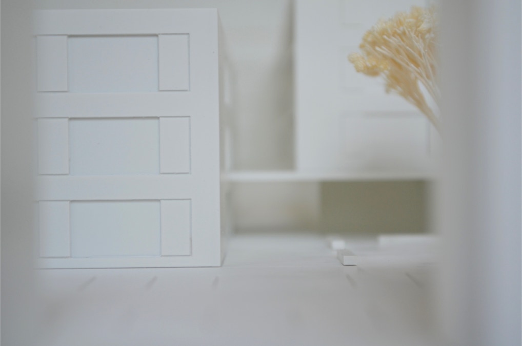 Die klare räumliche Zuordnung der Lernhäuser pro Geschoss und Gebäudeflügel erlauben eine gute Orientierung im Gebäude. Ein großzügiger Flur erschließt das Raumangebot und bietet Platz für das Ankommen (Garderobe/Spinte) sowie für Austausch und Interaktion zwischen den Schülern. Er ist Teil des Lernumfeldes und weit mehr als nur Erschließung. Eine Bank entlang des Fensterbandes lädt zum Verweilen ein, Seitenlichter erlauben den Ein- und Ausblick in die Lernräume, in die Zwischenwand integrierte Vitrinen bieten Platz für Ausstellungen.