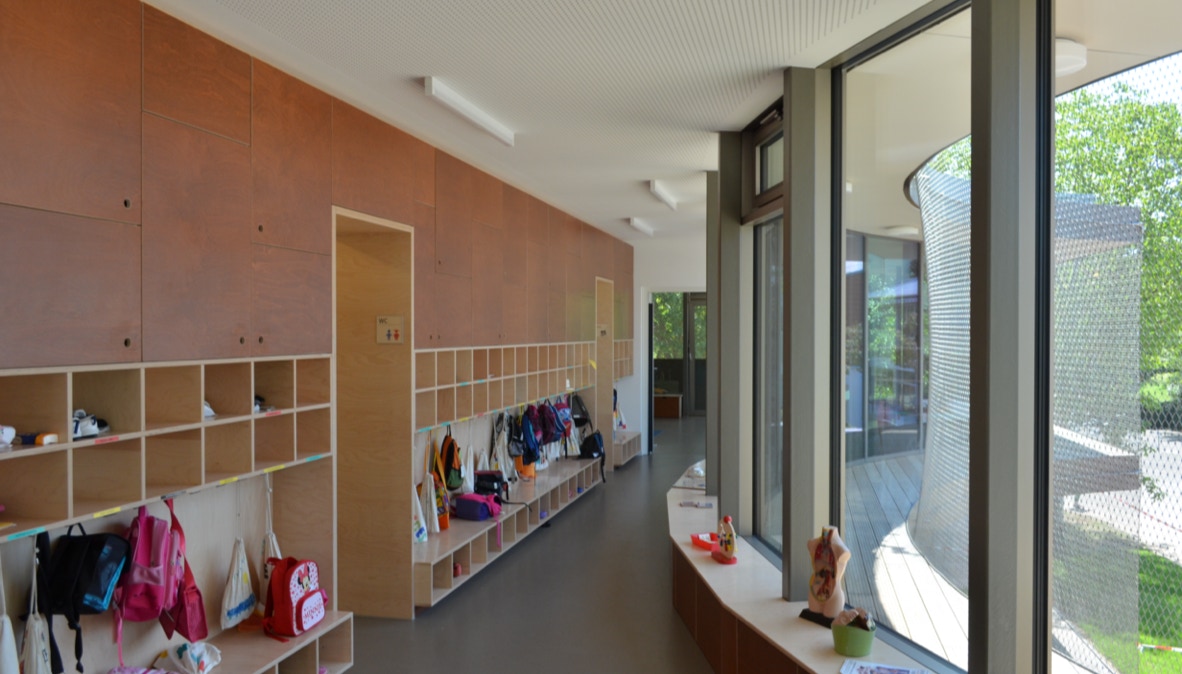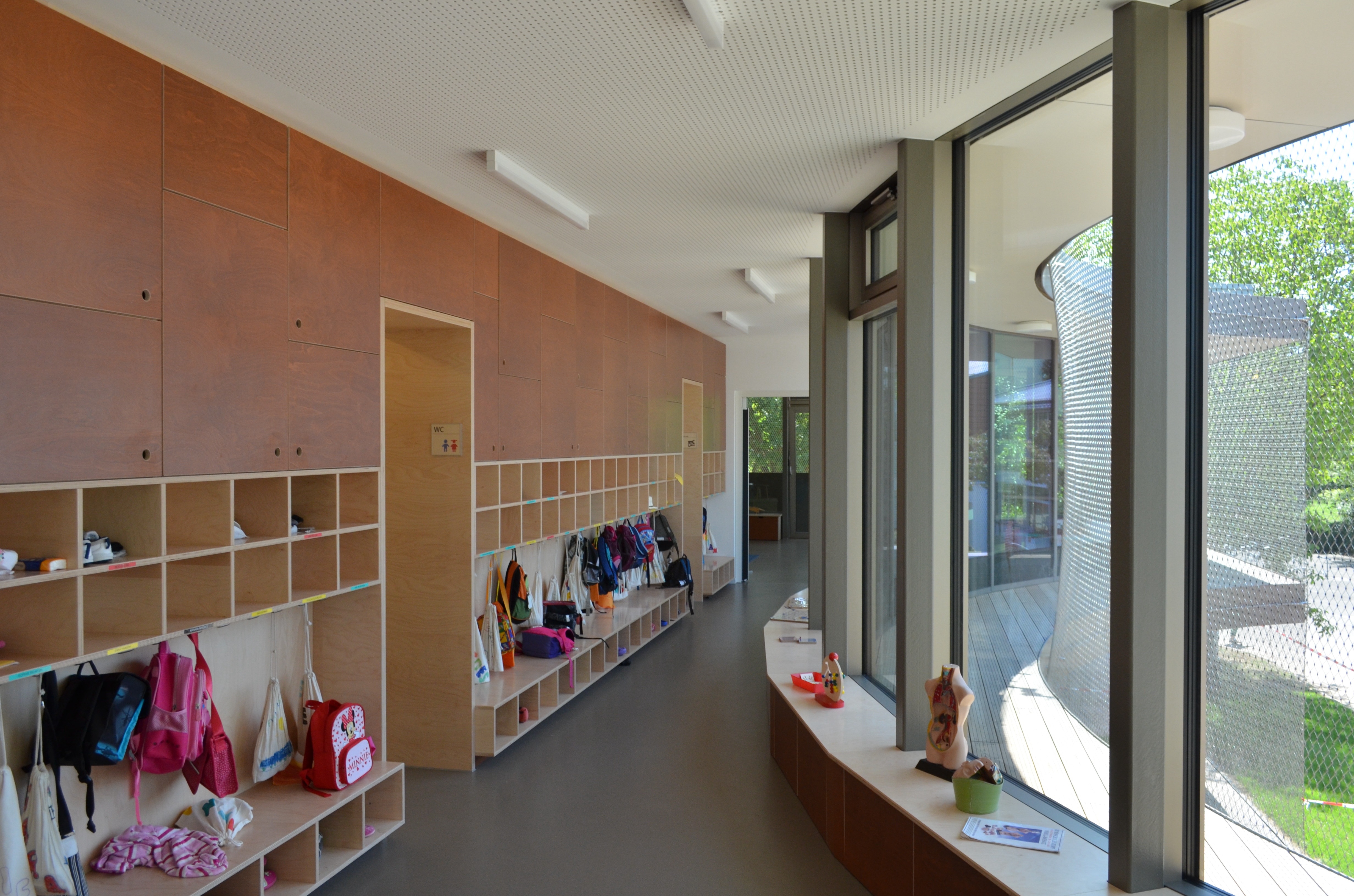 Eine starre Gruppenzuteilung der Kinder wurde zu Gunsten einer individuellen, in Kleingruppen temporär organisierten Arbeit nach Einzelinteressen, aufgegeben. Zuschnitt und Größe der Räume ist allein über die Funktion des Raumes definiert. Entsprechend diesem pädagogischen Grundkonzept ist die Anordnung relativ frei von einem geometrischen Grundraster und ist ausgerichtet auf mögliche Veränderungen und Umbauten.